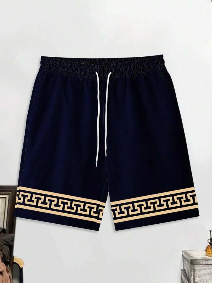 Manfinity LEGND Men's Slim Fit Geometric & Letter Print Short Sleeve T-Shirt And Drawstring Waist Pocket Shorts Se