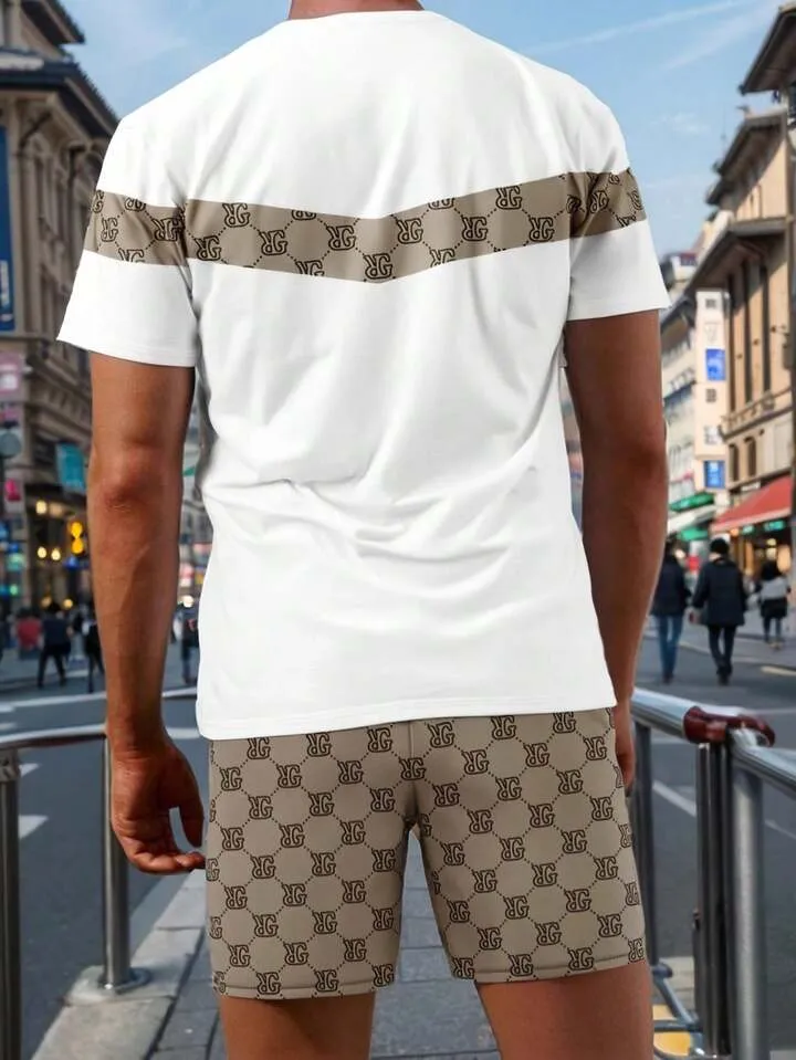 Men's Letter Print Crew Neck Short Sleeve T-Shirt & Shorts Set